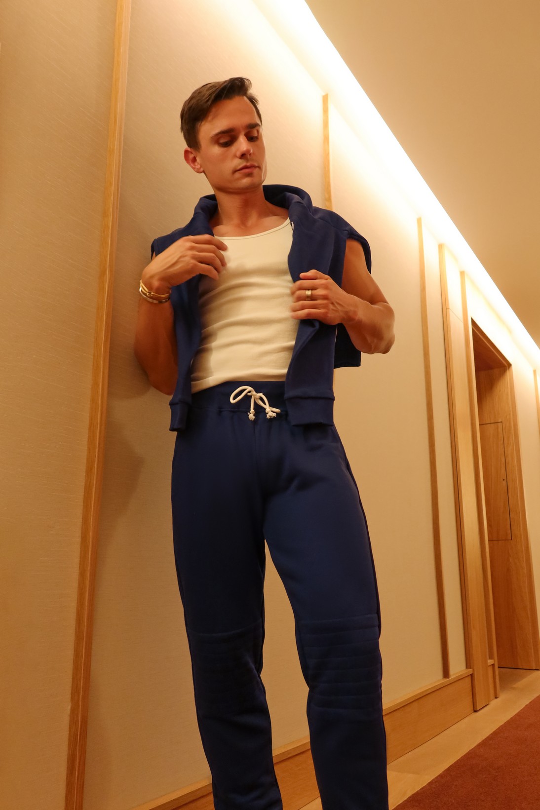 6 '0 "(182 см) / грудь 33" (102 см) и выбирает размер M для более спортивного образа
